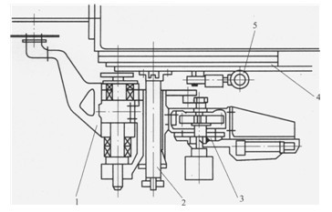 1-剪切臂;2-主軸;3-1#1柄連桿機(jī)構(gòu);4-傳動(dòng)箱