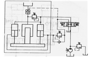 把圖3 .2-10中的兩個輔助液壓缸合成一個小液壓缸放在主缸活塞的中心,也可起到與圖3 .2-10的系統(tǒng)同樣的作用,如圖3. 2-11。其工作原理與圖3 .2-10完全相同。
