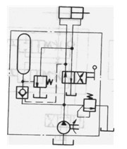 2)蓄能器加速回路快速時泵與蓄能器同時向執(zhí)行機構供油,慢速時泵單獨供油,蓄能器充油。如圖3.2-9所示。
