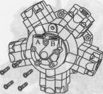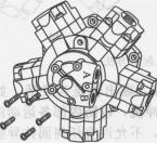⑦馬達(dá)可按任意方向安裝。如馬達(dá)安裝時(shí)發(fā)現(xiàn)進(jìn)出油口位置不好,可按圖所示的步驟調(diào)轉(zhuǎn)馬達(dá)進(jìn)出油口的角度:按住通油盤不放(整個(gè)過程都必須按緊通油盤,不允許放手),擰出5個(gè)安裝螺栓,旋轉(zhuǎn)到需要的角度,找到相應(yīng)的螺栓孔,均勻擰緊螺栓即可。