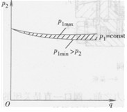 減壓閥的P2-q特性曲線如圖6-30所示。減壓閥進(jìn)口壓力Pi基本恒定時(shí),若通過的流量g增加,則閥口縫隙XR加大,出口壓力略微下降。先導(dǎo)式減壓閥出油口壓力的調(diào)整值越低,它受流量變化的影響就越大。