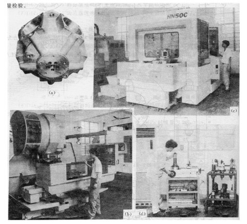 NHM型馬達的生產(chǎn)過程均采用先進的技術(shù)與設(shè)備。圖1(a)是采用球墨鑄鐵精密鑄造的馬達殼體,其內(nèi)在質(zhì)量和外觀表面均已達到世界著名公司的水平;圖7-7(b)、(c)是在數(shù)控機床和進口加工中心加工零部件的情形;圖7-7(d)為檢驗人員正在一絲不茍進行產(chǎn)品質(zhì)量檢驗。