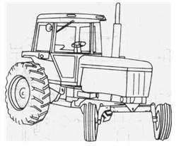 農(nóng)用拖拉機與牽引或懸掛式農(nóng)機具配套可完成耕地、整地、播種、施肥、植保等多種作業(yè)。農(nóng)用迪爾4450拖拉機,其外型如圖4 .1-1所示。