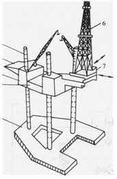a)鉆井平臺外觀簡圖 1-沉墊2-直升飛機(jī)平臺3-升降室4-直升飛機(jī)平臺5-樁腿6-鉆機(jī)井架7-井架底座 液壓系統(tǒng)按鉆井工藝要求分以下幾個回路:
