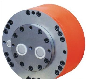 QJM型液壓馬達(dá)的配油軸是與后蓋剛性連接的,轉(zhuǎn)子體以配油軸作徑向支承,以定子球形滾道和鋼球作軸向支承,轉(zhuǎn)子出軸是內(nèi)花鍵,要求工作機(jī)構(gòu)傳動軸與他松動配合,這樣轉(zhuǎn)子體是浮動的,配油軸是剛性的,故允許用鋼管連接進(jìn)出油口。壓力油經(jīng)配油軸中通道(或變速閥)分配到個通道高壓腔的配油窗口進(jìn)入各活塞缸孔?;钊趬毫τ妥饔孟拢ㄟ^鋼球以正壓力N作用到定子上,定子以同值的反作用力N′作用到鋼球。N′可分解為徑向和切向2個分力,徑向力為油壓力所平衡,切向力F通過活塞作用于轉(zhuǎn)子體。這樣轉(zhuǎn)子體在F力的推動下繞配油軸旋轉(zhuǎn),因同一瞬間有幾只活塞處于壓力油的作用下,所以能產(chǎn)生很大扭矩。當(dāng)活塞隨轉(zhuǎn)子體旋轉(zhuǎn)到定子曲面的頂點(diǎn)后,活塞在定子曲面的推動下向軸心回程,將活塞缸中工作油經(jīng)配油軸窗口排回低壓油道。如此往復(fù)即完成將壓力能轉(zhuǎn)換成機(jī)械能的任務(wù),使液壓馬達(dá)不斷旋轉(zhuǎn)。改變兩個通油口的油流方向,即可使反向旋轉(zhuǎn)。改變進(jìn)入液壓馬達(dá)的流量即可改變轉(zhuǎn)速,實(shí)現(xiàn)無級變速目的。有級變量液壓馬達(dá)排量的變化,是由裝置在液壓馬達(dá)配油軸中的變速閥位置的改變來實(shí)現(xiàn)的。變速閥的位置可以用手動機(jī)構(gòu)或先導(dǎo)閥來控制。(先導(dǎo)閥用戶自備)