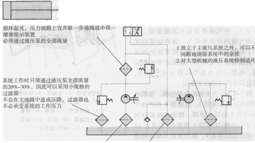 過濾器在液壓系統(tǒng)中的安裝位置及其有關(guān)的簡單說明示于圖7-3中。