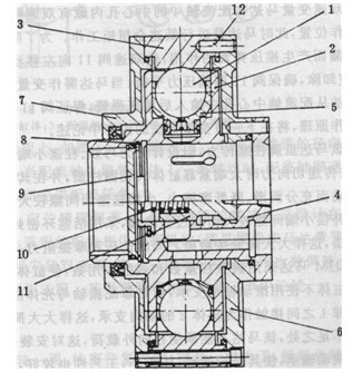配流軸的軸向位置由左端小套中的彈簧5確定,彈簧力量很弱,不會影響配流軸的浮動作用。