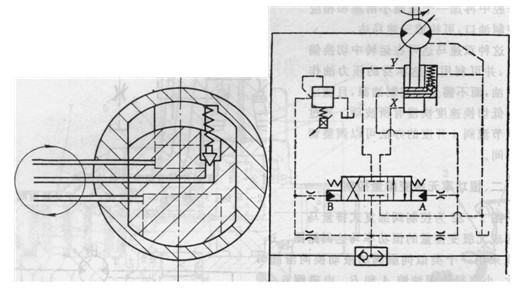 從圖2可以看出,這種變排量控制是靠加一個(gè)壓力信號(hào)到變量控制閥上,信號(hào)壓力值決定了偏心溢流閥的調(diào)整值,而偏心溢流閥的調(diào)定值又決定了馬達(dá)的排量,由此構(gòu)成一個(gè)液壓—一機(jī)械反饋的閉環(huán)控制。這種控制方式允許預(yù)先設(shè)定馬達(dá)變排量范圍內(nèi)的任一排量值,并據(jù)此在整個(gè)運(yùn)行速度范圍內(nèi)使馬達(dá)平穩(wěn)地加速或減速。調(diào)整比例壓力閥就可以實(shí)現(xiàn)速度調(diào)節(jié)。這種結(jié)構(gòu)顯然適宜于電液遙控以及要求用微處理機(jī)來(lái)控制的場(chǎng)合。