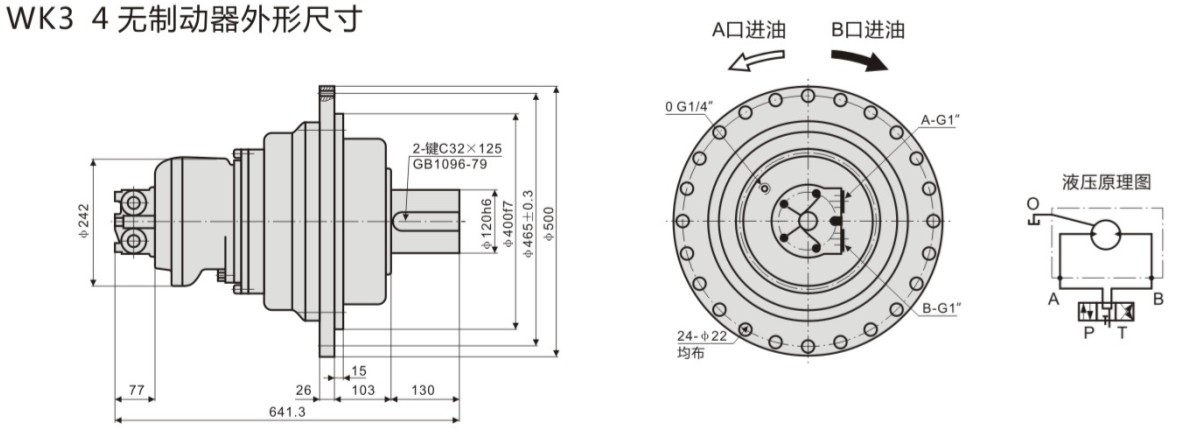 WK3-1000CD31H表示液壓傳動(dòng)裝置采用單級(jí)行星減速器傳動(dòng),齒輪箱模數(shù)為3,總排量為1000ml/rev,輸出軸采用螺紋聯(lián)接,液壓馬達(dá)配流器D31,額定壓力等級(jí)為20MPa.