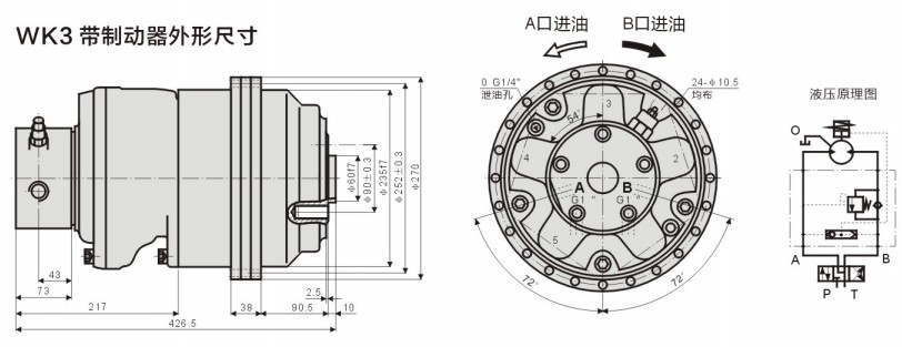 (6)、泄油管定位:WK傳動(dòng)裝置允許任何方向安裝:為保證馬達(dá)內(nèi)個(gè)運(yùn)動(dòng)副的潤滑,要求在工作之前將馬達(dá)內(nèi)充滿液壓油,泄油口位置的選擇必須保證運(yùn)轉(zhuǎn)中殼體充滿液壓油。