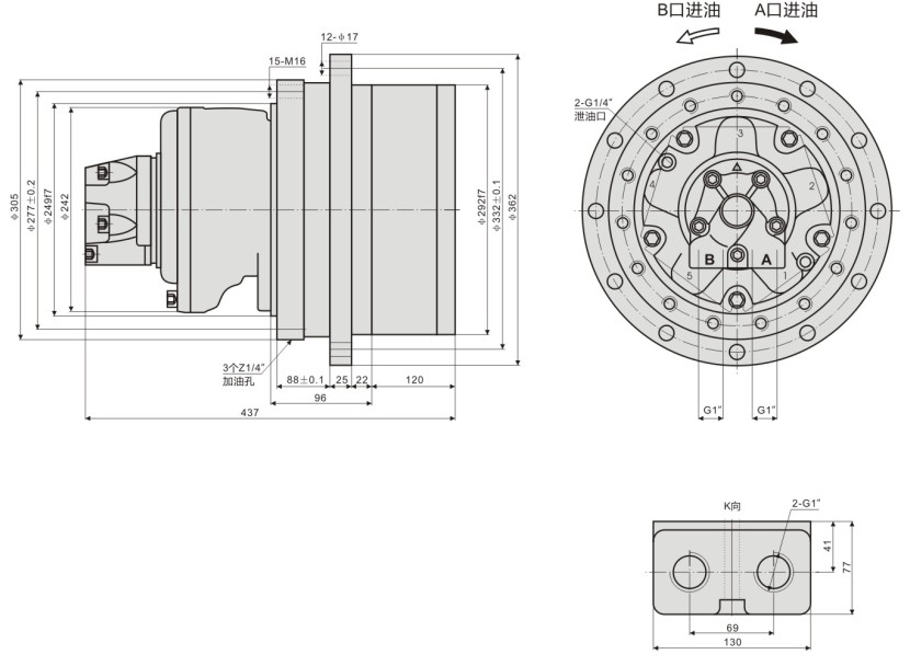 ????? YK系列殼轉(zhuǎn)傳動(dòng)裝置是我公司專門為煤礦掘進(jìn)機(jī)開發(fā)的新型、高效的掃煤驅(qū)動(dòng)裝置,解決了掃煤耙爪在低速運(yùn)行狀態(tài)下的爬行問題,大大提高了掘進(jìn)機(jī)掃煤裝置的運(yùn)行穩(wěn)定性。YK系列殼轉(zhuǎn)傳動(dòng)裝置由高效率柱塞液壓馬達(dá)以及高效率端面配流液壓馬達(dá)加減速機(jī)構(gòu)成,結(jié)構(gòu)緊湊,外形美觀,可連續(xù)長時(shí)間工作。
